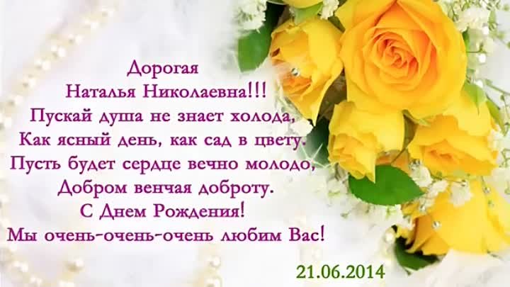 с днем рождения наталия николаевна. 3 августа свой день рождения отмечает президент федерации акробатического рок н ролла москвы татьяна николаевна быстрова. от всей души поздравляем вас с днём рождения. хочется от души поздравить вас с днём рождения. прикольные поздравления открытки с днем рождения натальи.